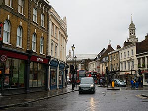 中心はウィンブルドン駅の周辺で、狭い範囲ながら商業地域となっており、ロンドン中心部まで出なくても一通りのものが揃う程度の商店街やショッピングセンターが揃っています。その周囲はロンドンきっての高級住宅地で、ウインブルドン駅から数分歩けば閑静な住宅地に入ってしまう道も多いので、そういう意味では繁華街というほどの大きな街ではないでしょう。
